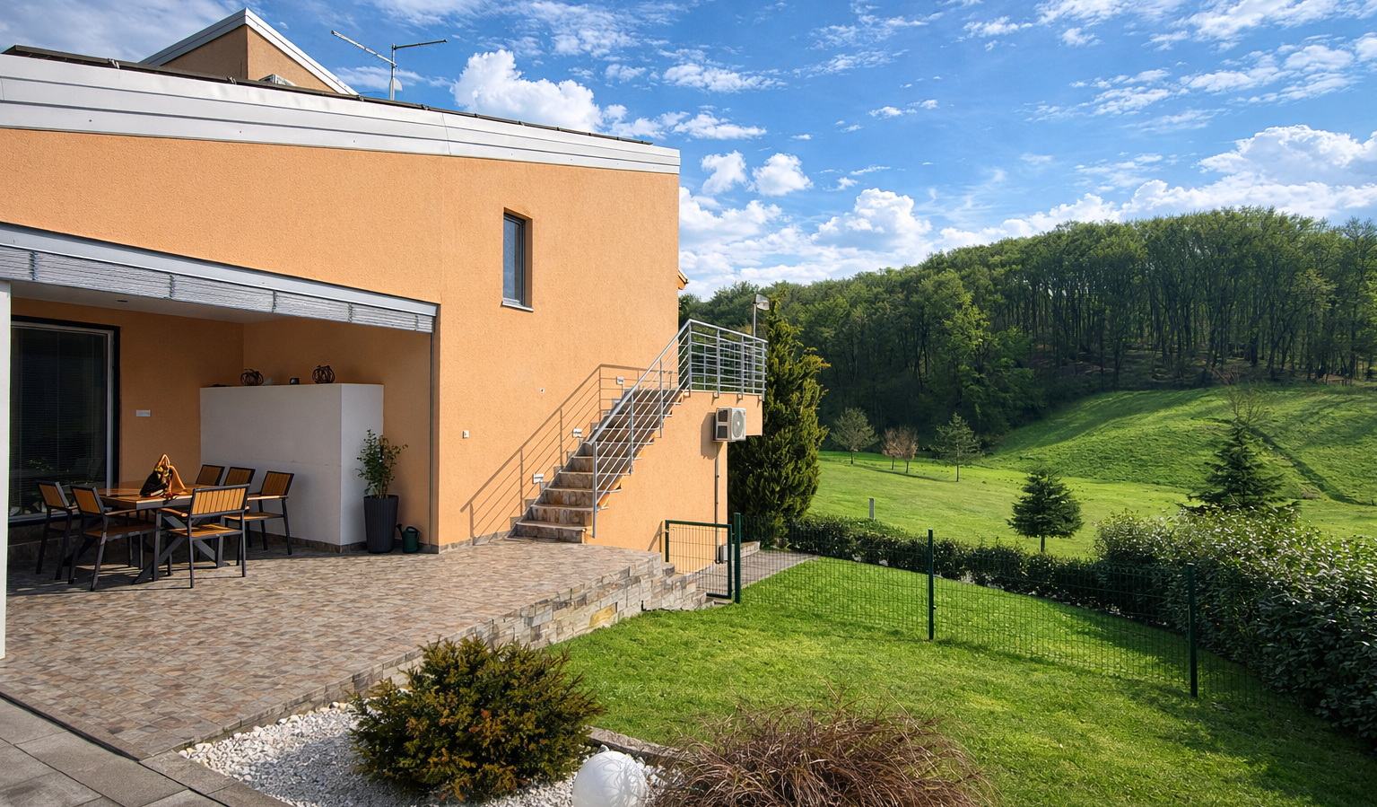 Na prodaju je elegantna vila smještena u mirnom i prestižnom okruženju mjesta Sveti Martin na Muri, poznatog po prirodnim ljepotama, termalnom turizmu i visokoj kvaliteti života. Vila se prostire na 125 m² suvremeno uređenog stambenog prostora te raspolaže s 369 m² uređene okućnice koja pruža privatnost i otvoreni pogled na okolni krajolik. Arhitektonski je skladno osmišljena, s naglaskom na funkcionalnost, udobnost i dugoročnu vrijednost. Nekretnina obuhvaća vanjski bazen, jacuzzi i saunu, čime se stvara privatna wellness zona unutar vlastitog posjeda. Zimski vanjski odjel omogućuje boravak na otvorenom tijekom cijele godine, dok prostrana terasa dodatno naglašava povezanost interijera s prirodom. Osigurana su tri privatna parkirna mjesta te protuprovalna vrata za dodatnu sigurnost. U neposrednoj blizini nalaze se svi bitni sadržaji – trgovina, ljekarna, ugostiteljski objekti – kao i renomirani wellness kompleks Terme Sveti Martin, što lokaciju čini iznimno atraktivnom za život i turistički najam. Vila je renovirana 2025. godine. Do sada se uspješno koristila za dnevni turistički najam s ostvarenom cijenom od približno 250 € po danu u sezoni, uz već uspostavljenu suradnju za najam i korištenje bazenskih sadržaja, što budućem vlasniku omogućuje nastavak profitabilnog poslovanja bez zastoja. Nekretnina također posjeduje solarnu elektranu od 10kW koja omogućuje niže mjesečne režije te bolju energetsku učinkovitost Ova nekretnina predstavlja kvalitetnu investiciju, ali i ugodan dom u mirnom okruženju s izvrsnom infrastrukturom. Kontakt za više informacija i dogovor razgledavanja: Matija – 091 363 5480